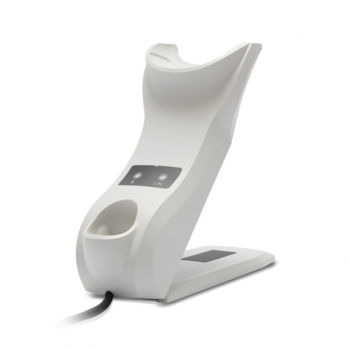 Зарядно-коммуникационная станция Cradle выполняет прием и передачу BLE-сигнала. Аксессуар можно установить на столе кассира или закрепить на стене. Подставка обменивается данными со сканером на расстоянии до 100 метров. Протокол Bluetooth Low Energy отвечает за стабильное соединение и экономию заряда батареи.
