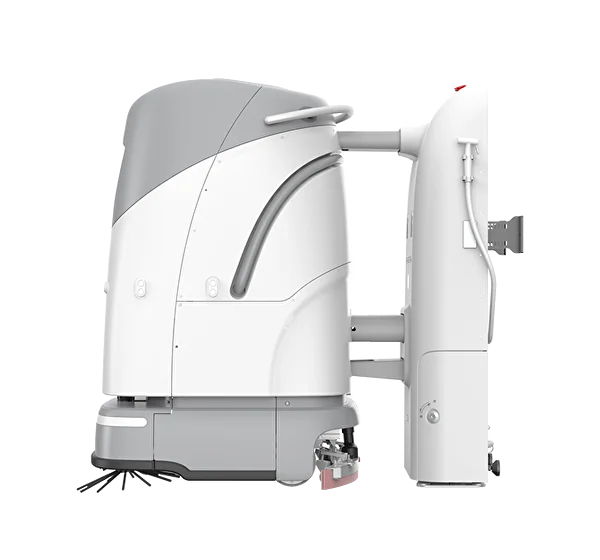 Автоматически регулируемая роликовая щетка, возобновление работы с точки прерывания, уборка пропущенных участков, автоматическое пополнение/слив воды, автоматическая подзарядка, управление доступом и связь с лифтами.
