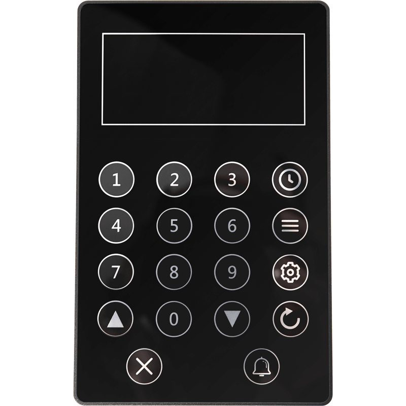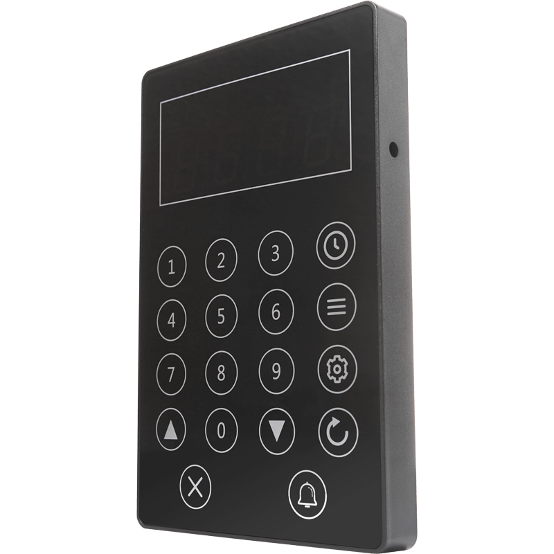 Стильный сенсорный пульт работает как в режиме группового звонка, так и передает сигнал на конкретный пейджер. Радиус приёма зависит от особенностей помещения, но составляет не менее 100 метров. Модель iKnopka APE100-1 работает с мобильными приемниками APE6600/APE6800/APE6900 со спецпрошивкой и табло R50. С пульта можно делать до 999 различных вызовов при помощи различных комбинаций кнопок от 0 до 9.