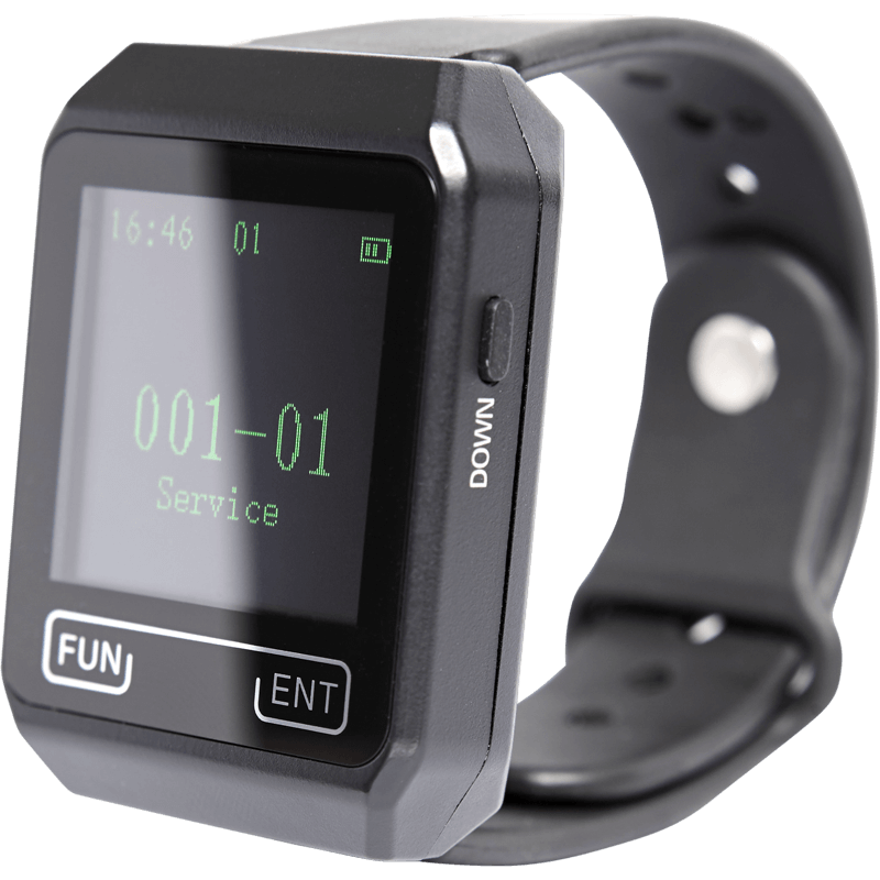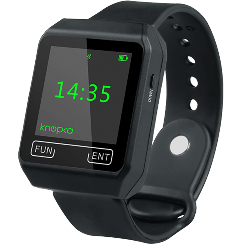 Мобильный пейджер-приемник iKnopka APE6800 со специальной прошивкой адаптирован для приема вызовов как с кнопок на столах, так и с кухонного пульта. Водонепроницаемый и ударопрочный корпус выполнен в виде смарт-часов с большим экраном. Современное оборудование для автоматизации ресторанного бизнеса.