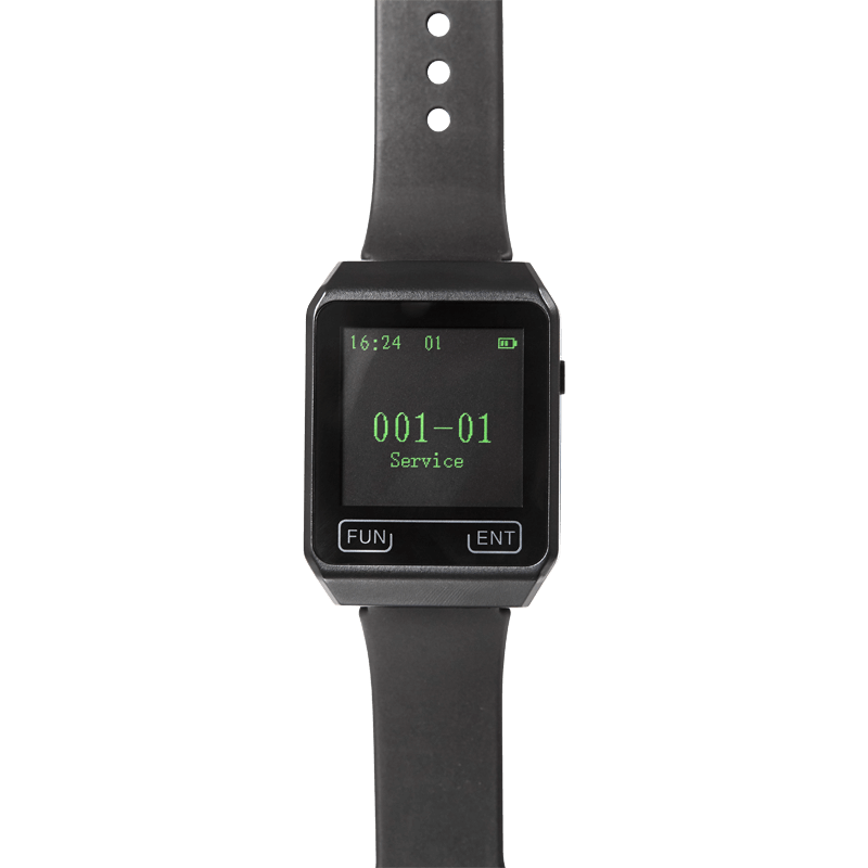 Водонепроницаемый и ударопрочный пейджер-приемник iKnopka APE6800 в виде смарт-часов с большим экраном. Высокотехнологичное устройство для официантов современного ресторана.