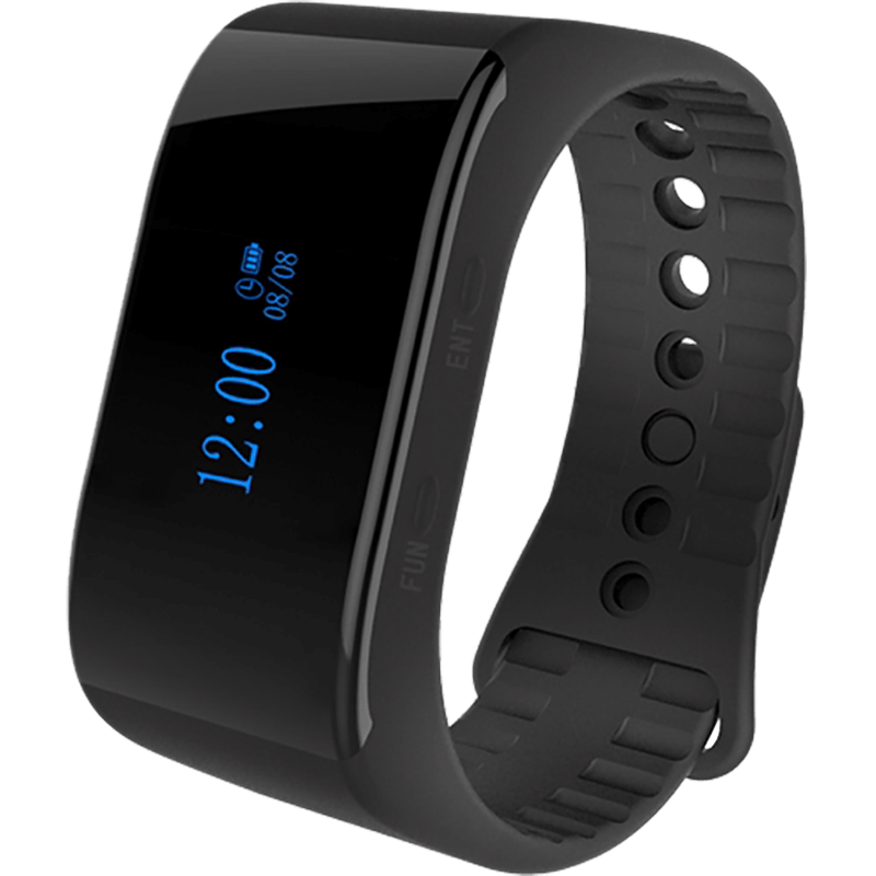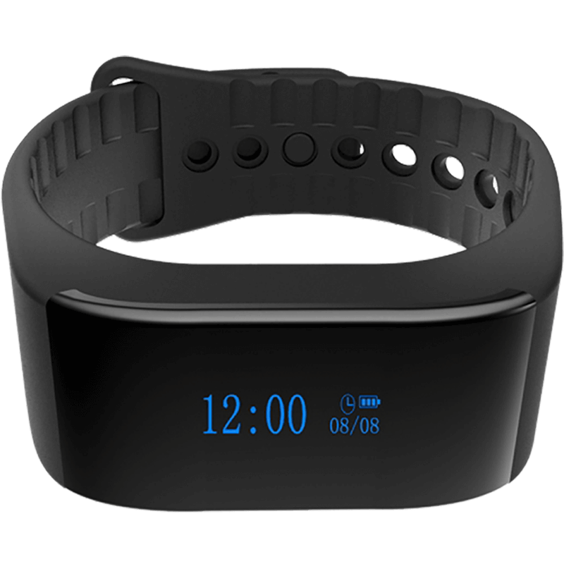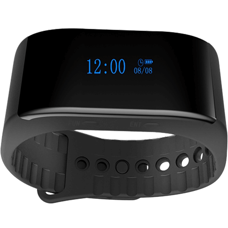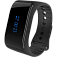 Лаконичный дизайн и плавные линии: чёрный пластиковый корпус, широкий OLED-дисплей с ярко-голубыми символами и сенсорными кнопками, прорезиненный ремешок можно регулировать.