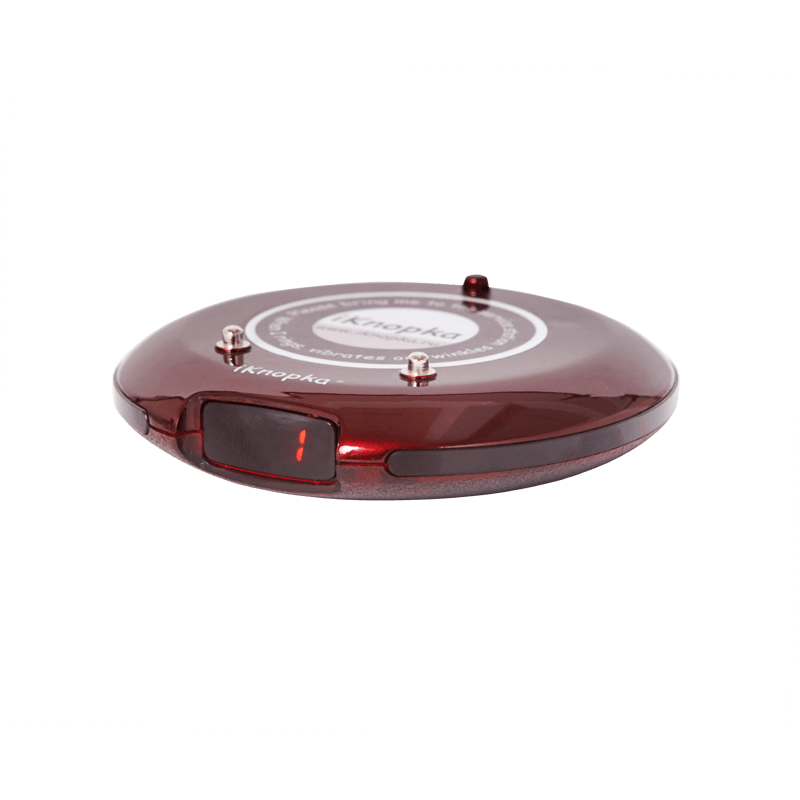 Пейджер клиента iKnopka R18 принимает вызовы с Базового блока T180 и оповещает о готовности заказа.
