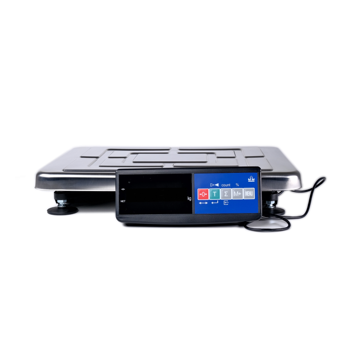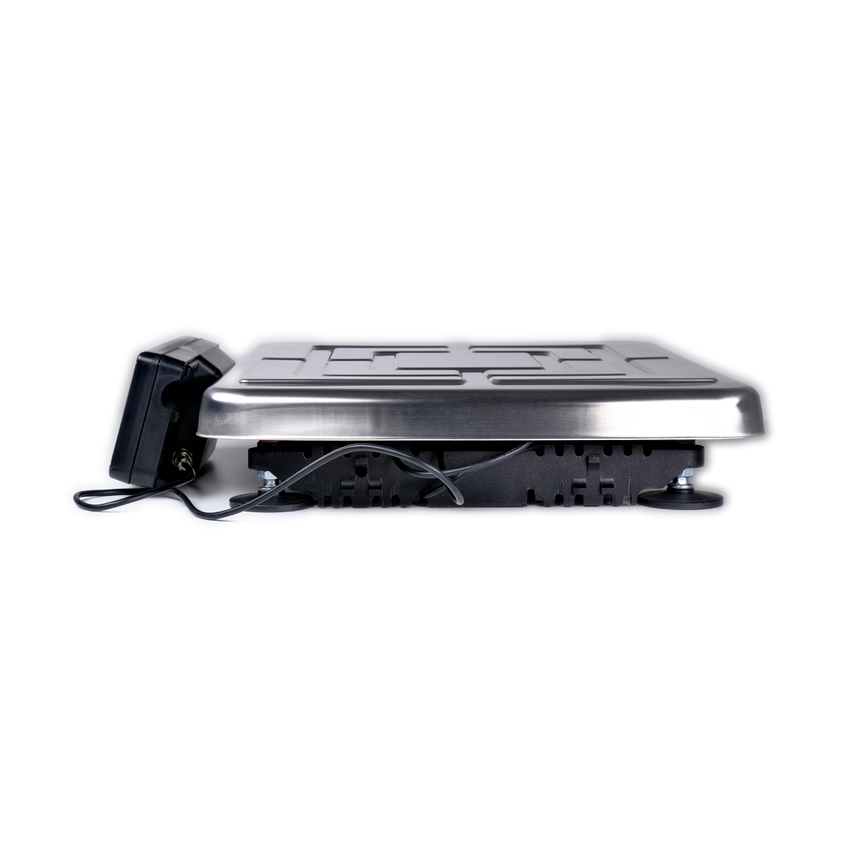 Масса-К ТВ-S-А1 - весы состоят из модуля взвешивающего и терминала, которые соединены между собой 5-метровым кабелем. Грузоприемная платформа может быть размещена на полу или на столе. Терминал может быть размещен на столе или закреплен на стене. Крепление терминала входит в комплект поставки. Весы легко интегрируются с учетными, кассовыми программами и кассами. Возможна работа в счетном и дозаторном режиме, режимах процентного взвешивания и контроля массы (компараторный режим). Встроенный аккумулятор обеспечивает автономную работу весов до 80 часов. Обмен информацией с внешними устройствами реализован по интерфейсу RS-232.