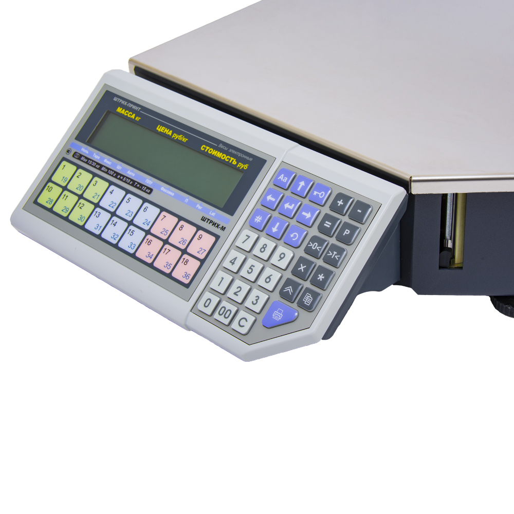 Функциональная клавиатура: 50 клавиш, включая 18 клавиш быстрого доступа для вызова до 36 товаров, обеспечивают оперативную работу с ассортиментом.