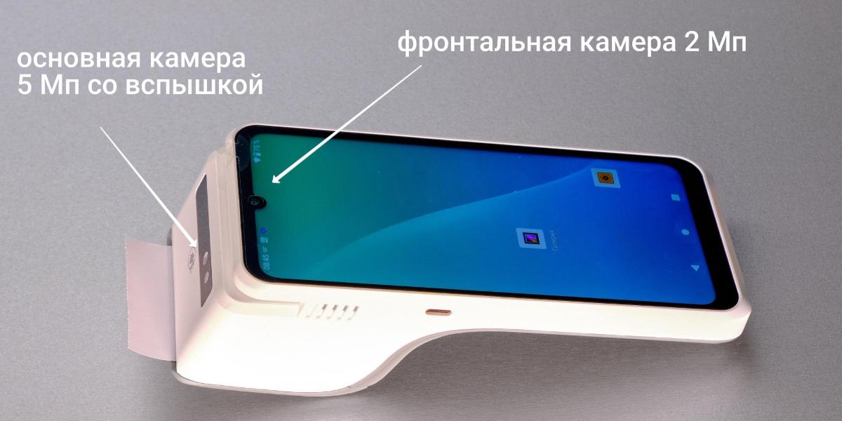 На передней части корпуса рядом с зоной бесконтактной оплаты расположена камера 5 Мп. В магазинах и кофейнях ее используют для сканирования штрих-кодов с товаров, включая маркировку DataMatrix (Честный знак) и QR с алкоголя (ЕГАИС). Может быть полезна для фотофиксации товара с браком или места хранения поставки.