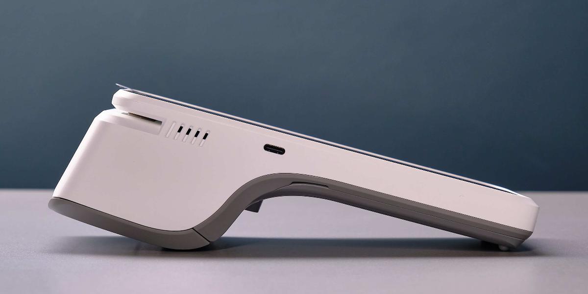 В мобильной кассе MSPOS-NEW стоит съемный аккумулятор емкостью 2500 мА·ч. Такого запаса обычно хватает на полный 12-часовой рабочий день. Подзарядка через кабель USB Type-C. Разъем находится на боковой части корпуса слева. Также через этот разъем происходит обновление прошивки ККТ.