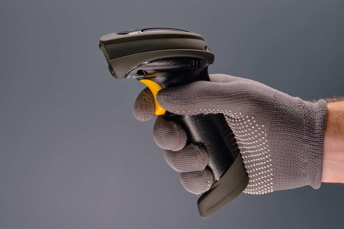 Смотрится устройство и правда хорошо, корпус черного цвета оптимально вписывается в дизайн любой кассовой зоны, яркая жёлтая кнопка радует взор и помогает быстрее находить сканер на рабочем месте. Отметим также, спусковой курок достаточно крупный, удобно расположен и легко нажимается.
