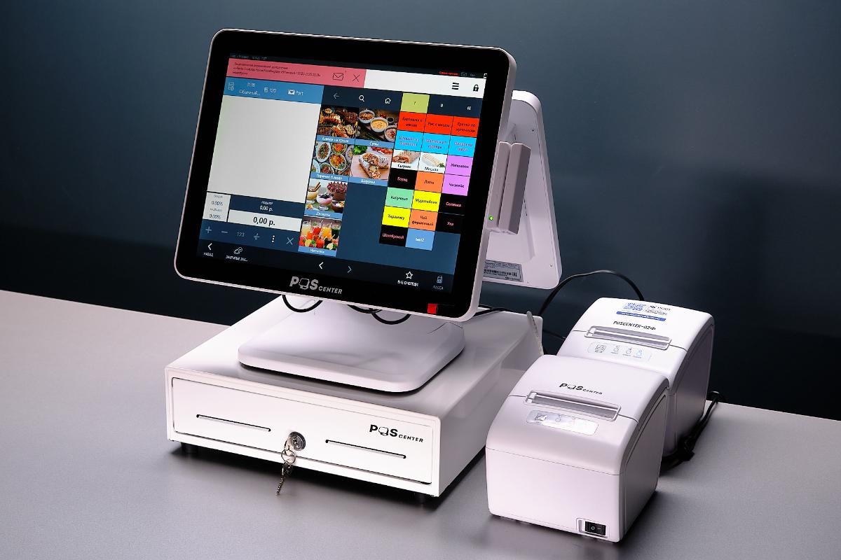 POS-терминал с сенсорным экраном нужен для приема заказов. Производители предлагают два варианта: более компактные моноблоки планшетного типа с диагональю 10-12 дюймов или полноформатные пос-терминалы с экраном 15-17 дюймов.